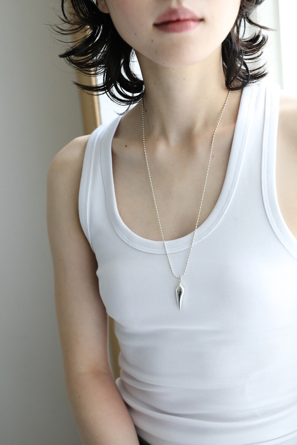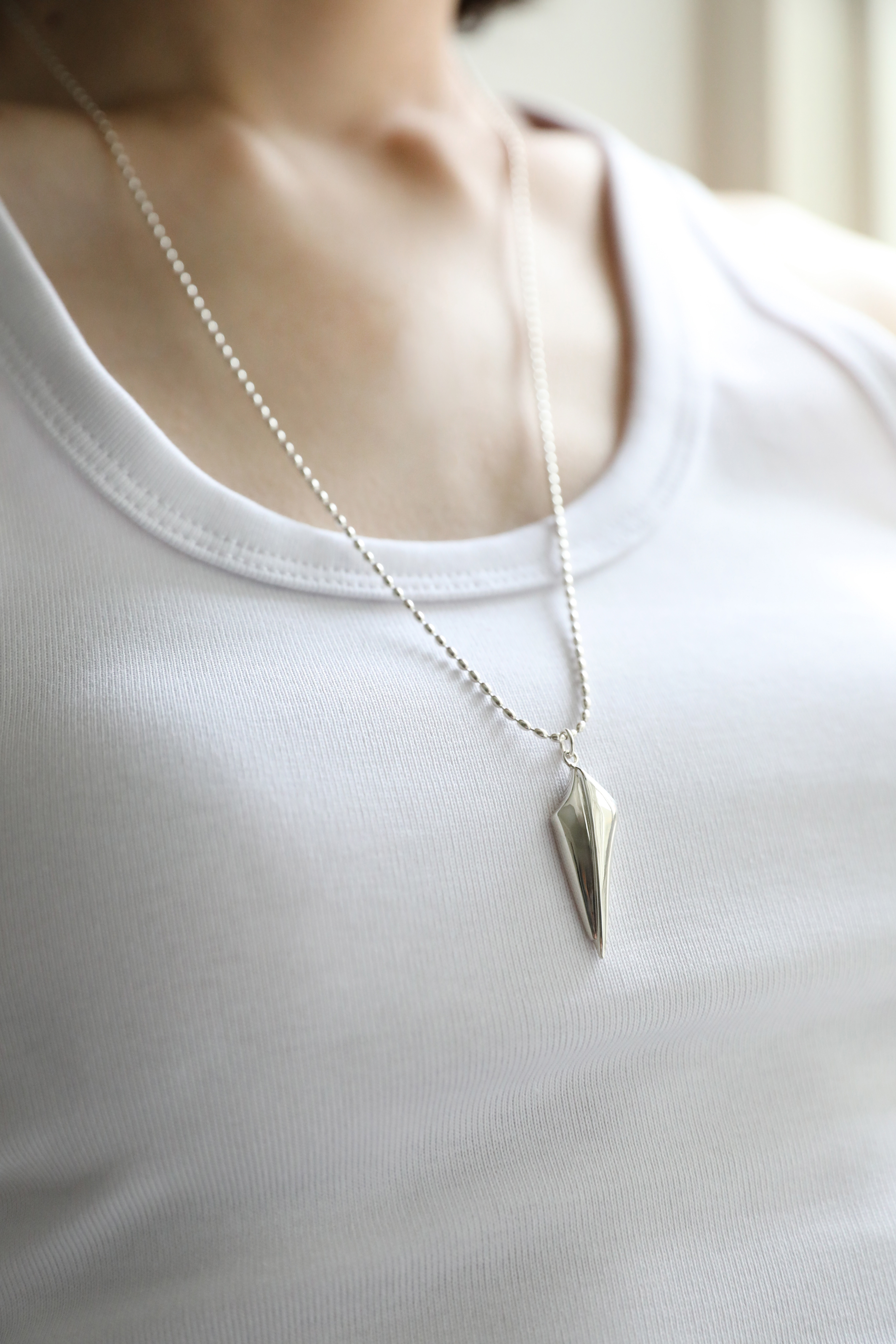 집을 옮겨 다니는 소라게에서 모티프를 얻어 제작한 펜던트 네크리스입니다. 60cm 기장으로 길게 떨어지는 실루엣이 상의 위에서 자연스럽게 포인트가 되며, 심플한 룩에도 균형감을 더해줍니다. 경쾌한 움직임을 가진 에그볼 체인을 사용해 착용 시 부드럽게 흐르는 라인이 특징입니다.