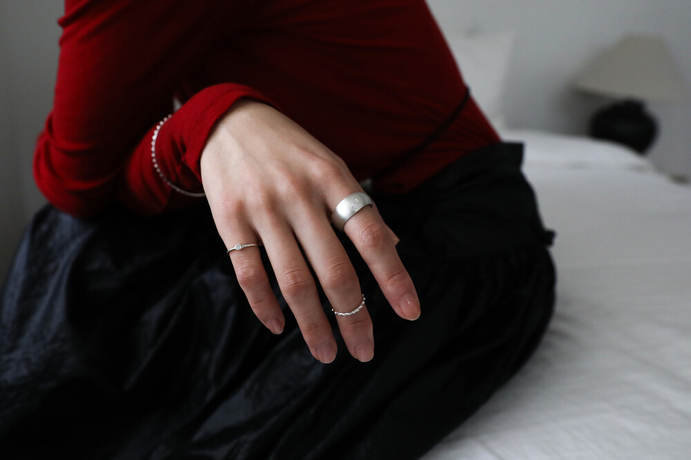 두께가 얇은 반지이기에 정사이즈 보다 1호수 작게 주문하시는 걸 추천드립니다! 만약 -1호 이하로 제작을 원하시면, 주문 시 배송 메세지에 손가락 둘레를 남겨주시면 맞춤 제작해 드립니다.