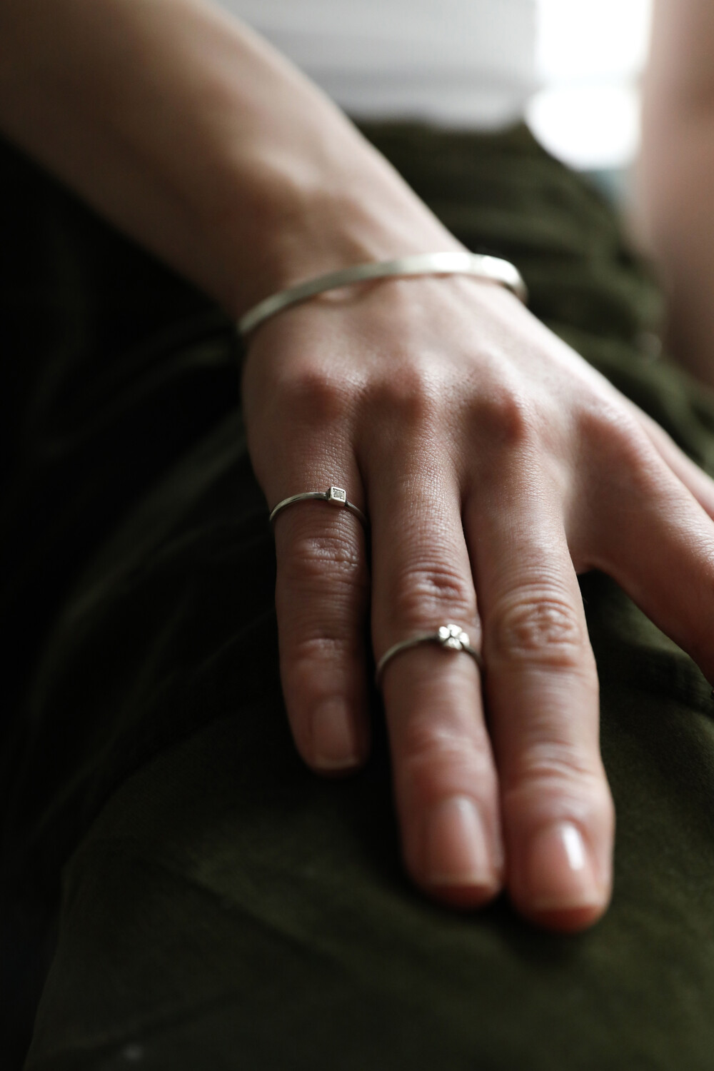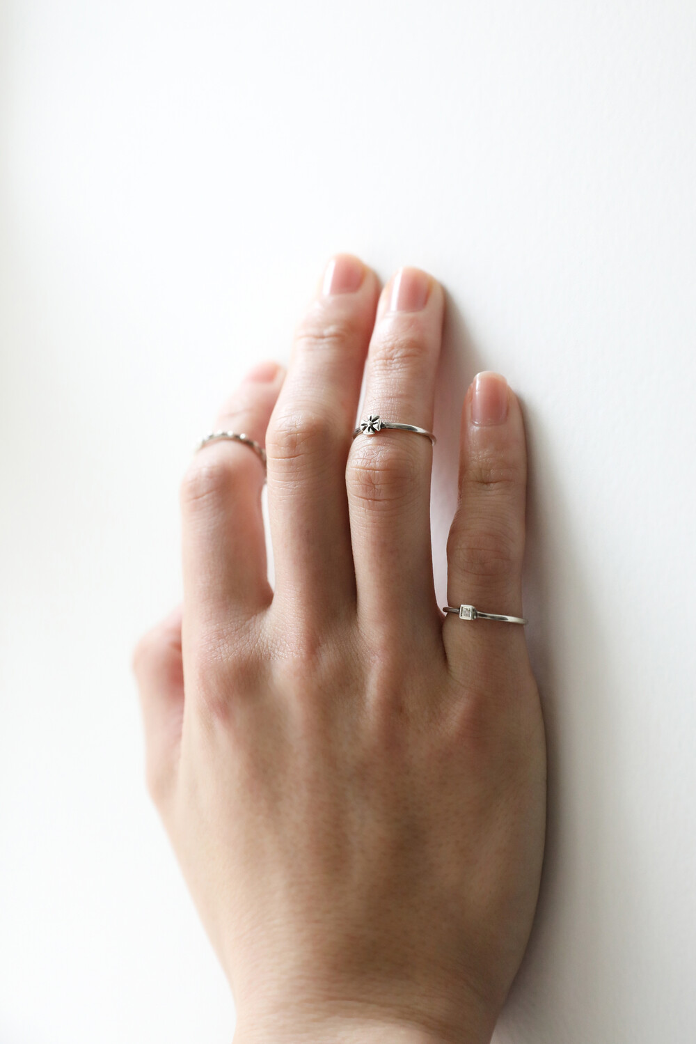 작은 큐빅을 네모난 펜던트 위에 섬세하게 세팅한 마디반지입니다. 단독으로 착용해도 충분한 포인트가 되며, 다른 반지들과 레이어드했을 때도 자연스럽게 조화를 이루는 디자인입니다. 표면은 은은한 빈티지 질감으로 마감해 과하지 않게 멋스러운 분위기를 더합니다.