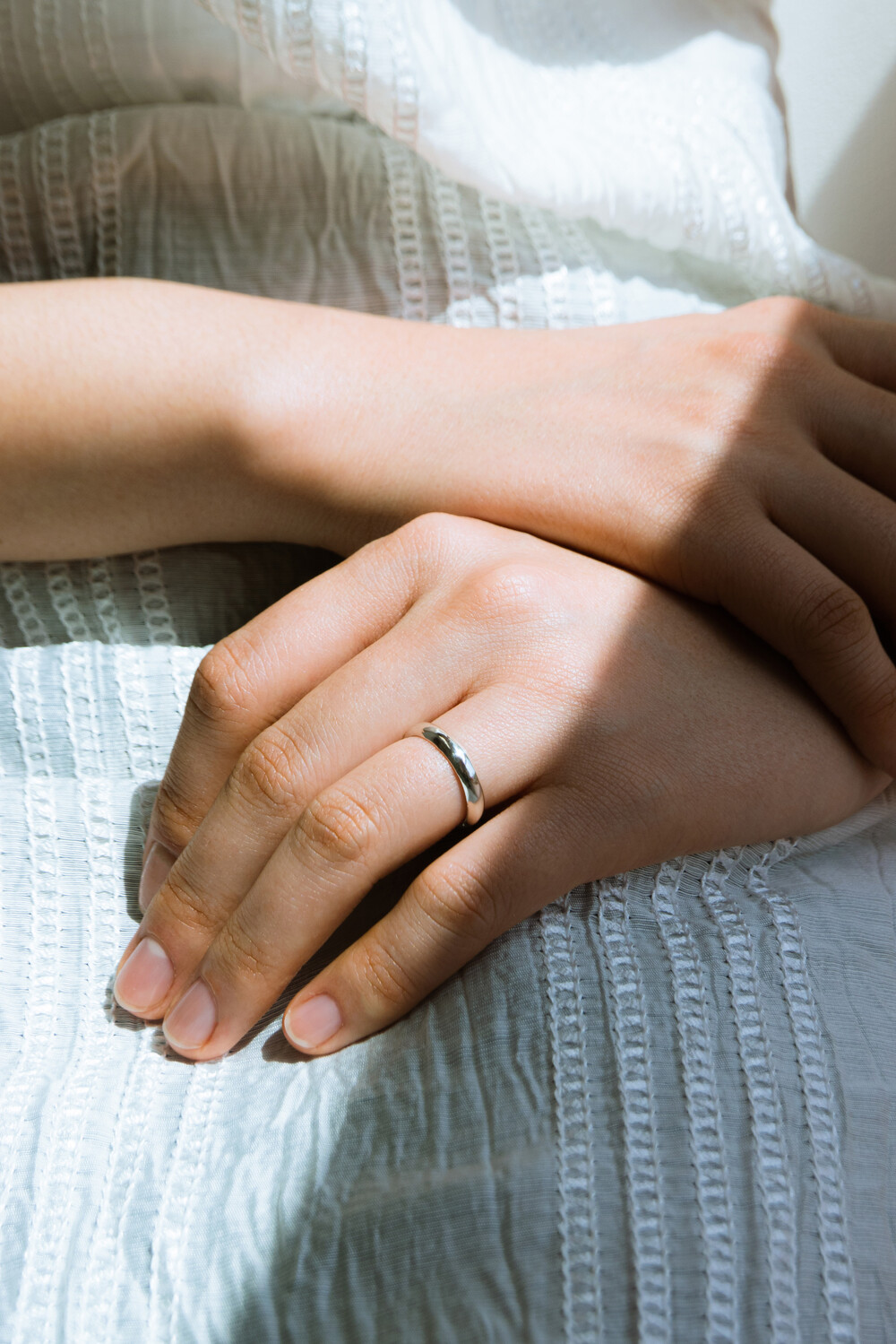 반지 안쪽을 굴려 부드러운 착용감을 더한 반지입니다. 깔끔하고 단정한 분위기로 데일리 하게 착용하게 좋은 제품입니다.