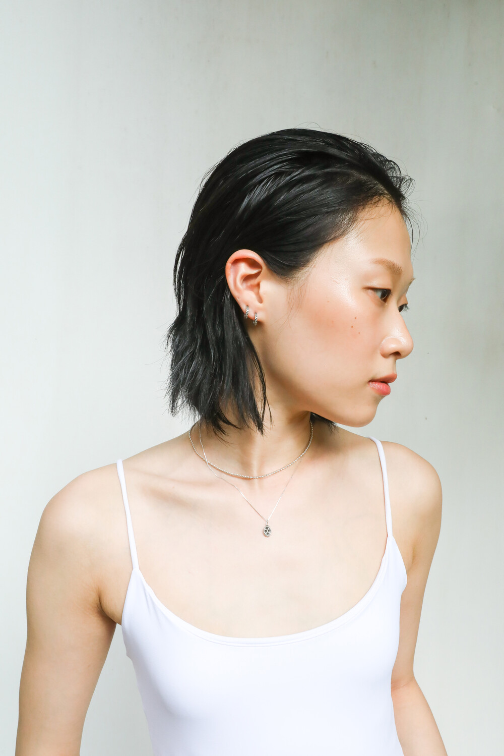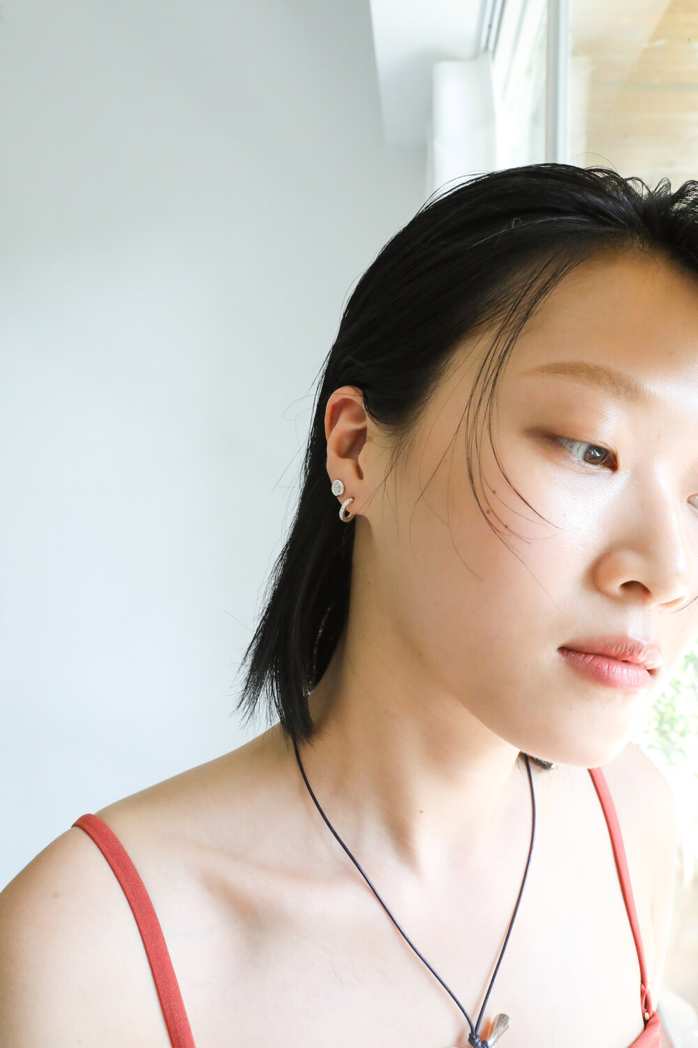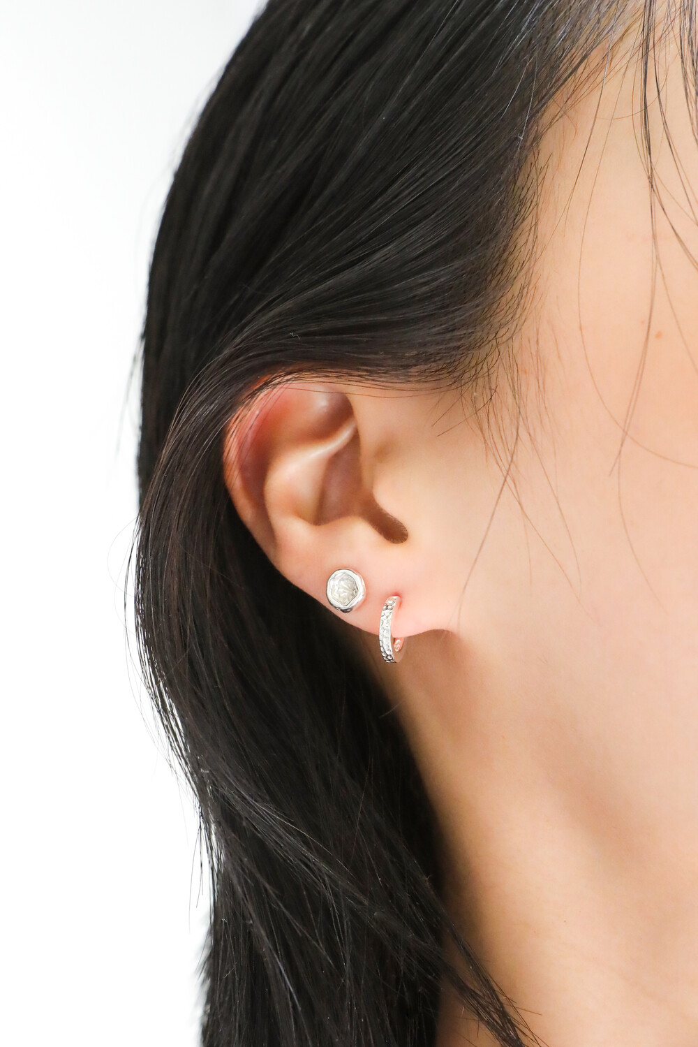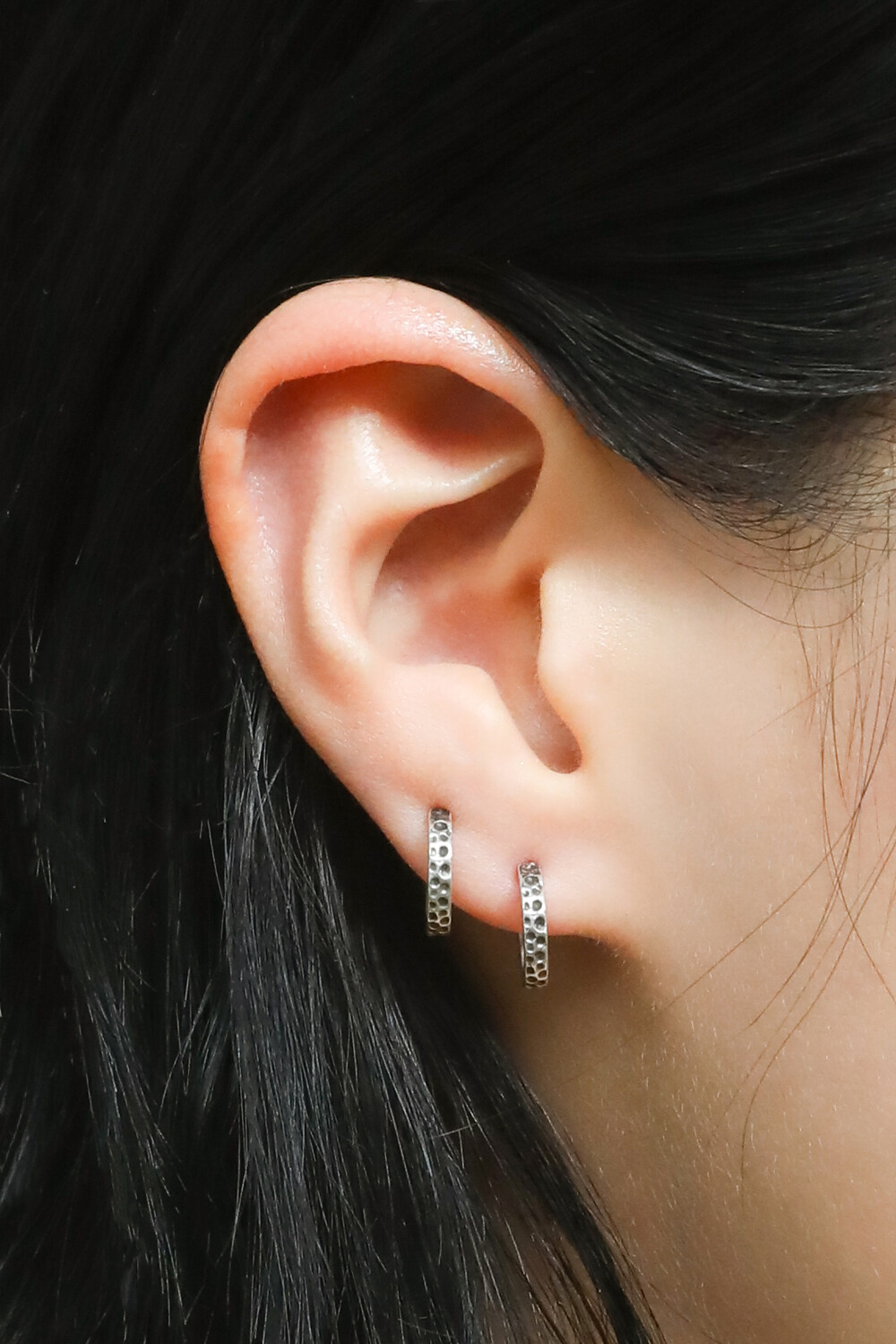옴폭 패인 돌의 불규칙한 질감을 담은미니 후프 귀걸이입니다.