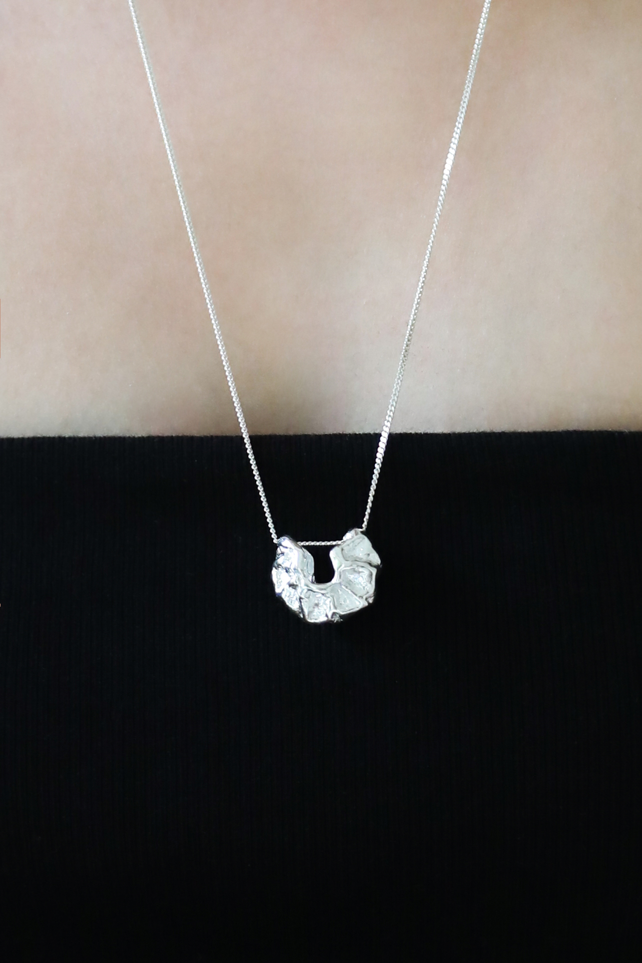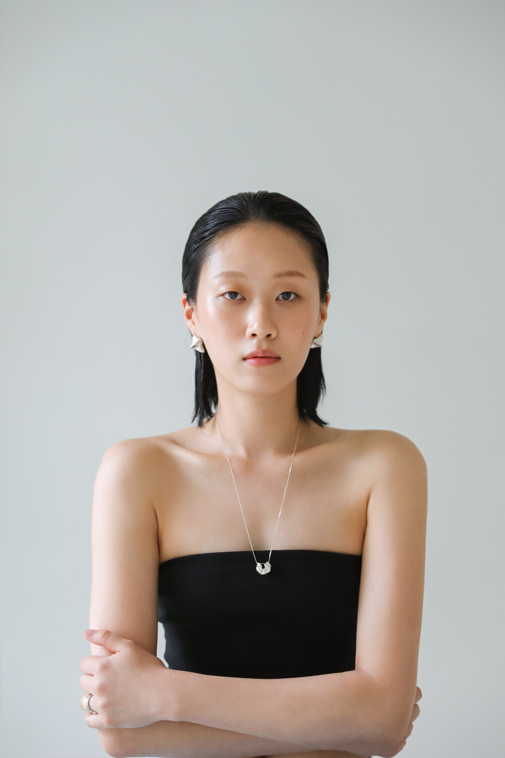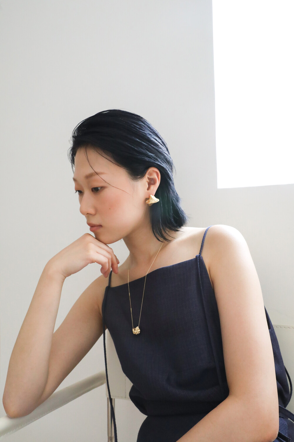 볼드한 형태와 독특한 질감이 매력적인 목걸이입니다. 속을 파내어 가볍게 착용이 가능한 것이 특징이며 60cm의 롱한 길이로 티셔츠나 원피스와 함께 연출하기 좋습니다.