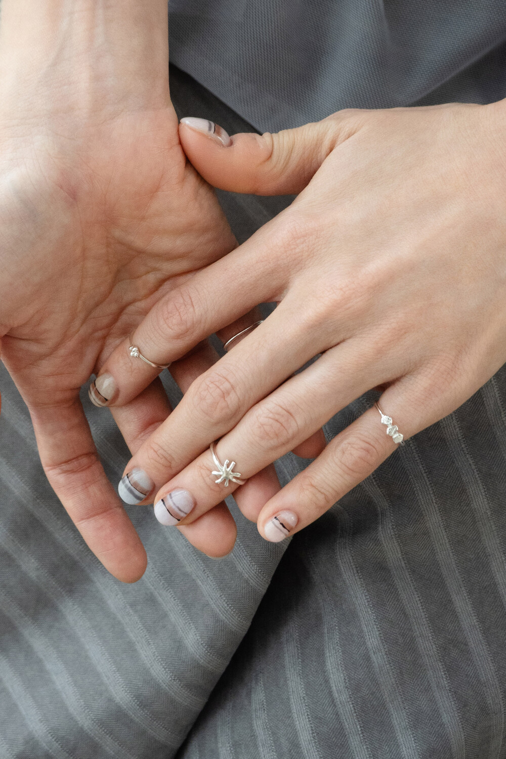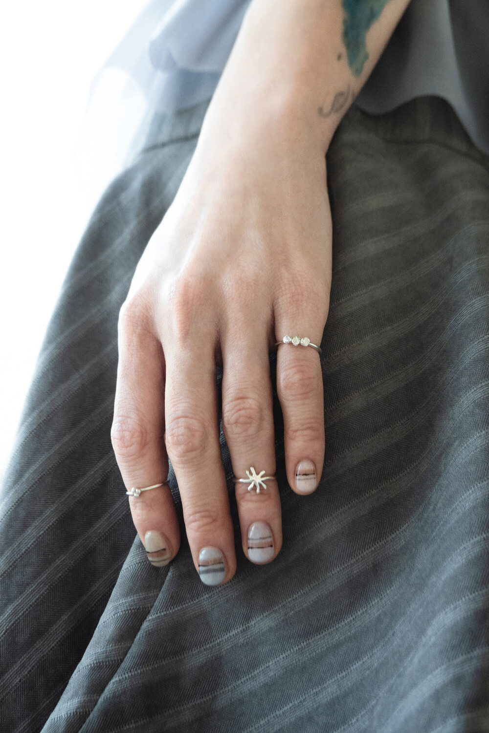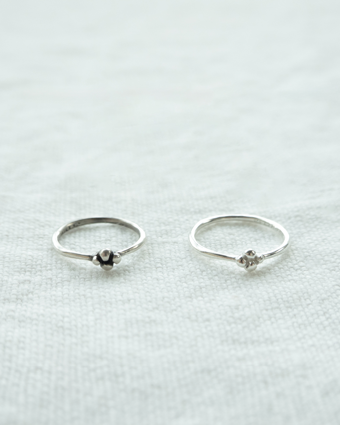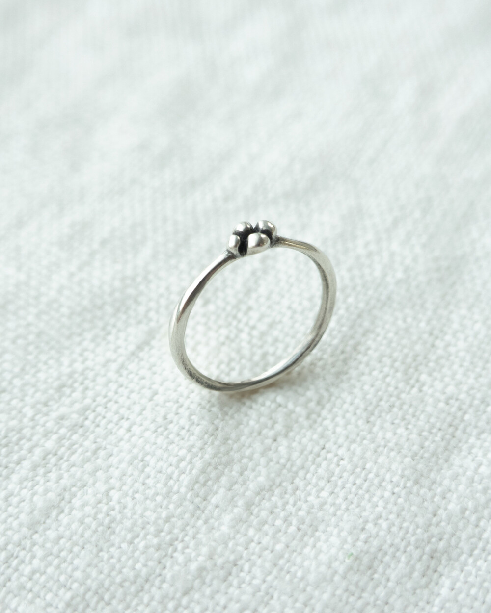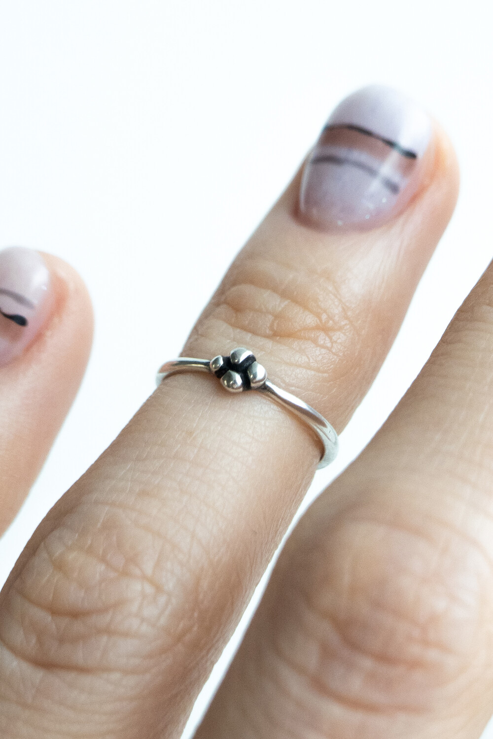네잎클로버를 아주 작게 형상화한 마디반지입니다. 작고 부담 없는 사이즈로 데일리하게 착용할 수 있어 마디 반지를 처음 착용하는 분들께 특히 추천드립니다. 동그란 모양의 크기를 각가 다르게 만들어 심심하지 않도록 포인트를 주었으며 반유광 질감과 빈티지 질감 두 가지 옵션 중 선택 가능합니다.