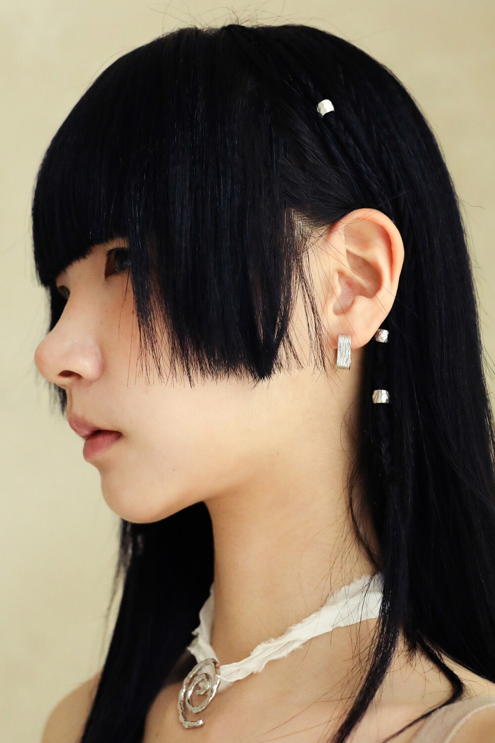 오래된 도자기의 질감을 담은 사각형 형태의 이어링입니다. 가벼운 착용감과 각도에 따라 달라 보이는 형태가 매력적인 제품입니다.