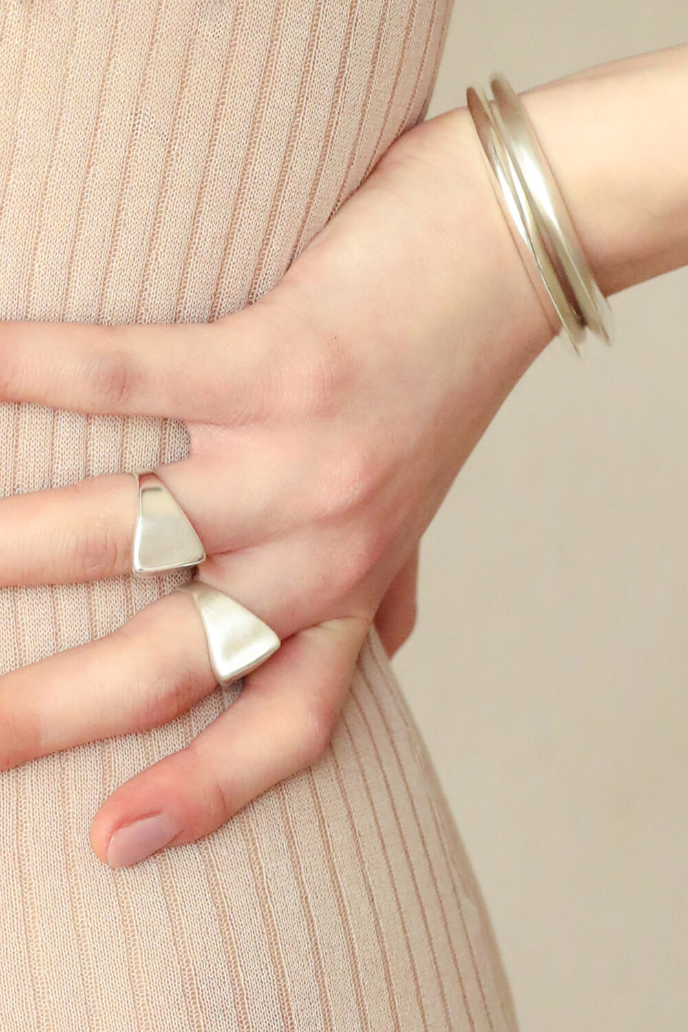 원주민의 무기에서 영감을 받았으며 꼬집은 듯한 형태가 매력적인 반지입니다. 아래로 갈수록 얇아지는 형태로 착용감 또한 우수한 제품입니다.