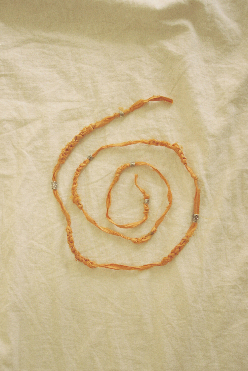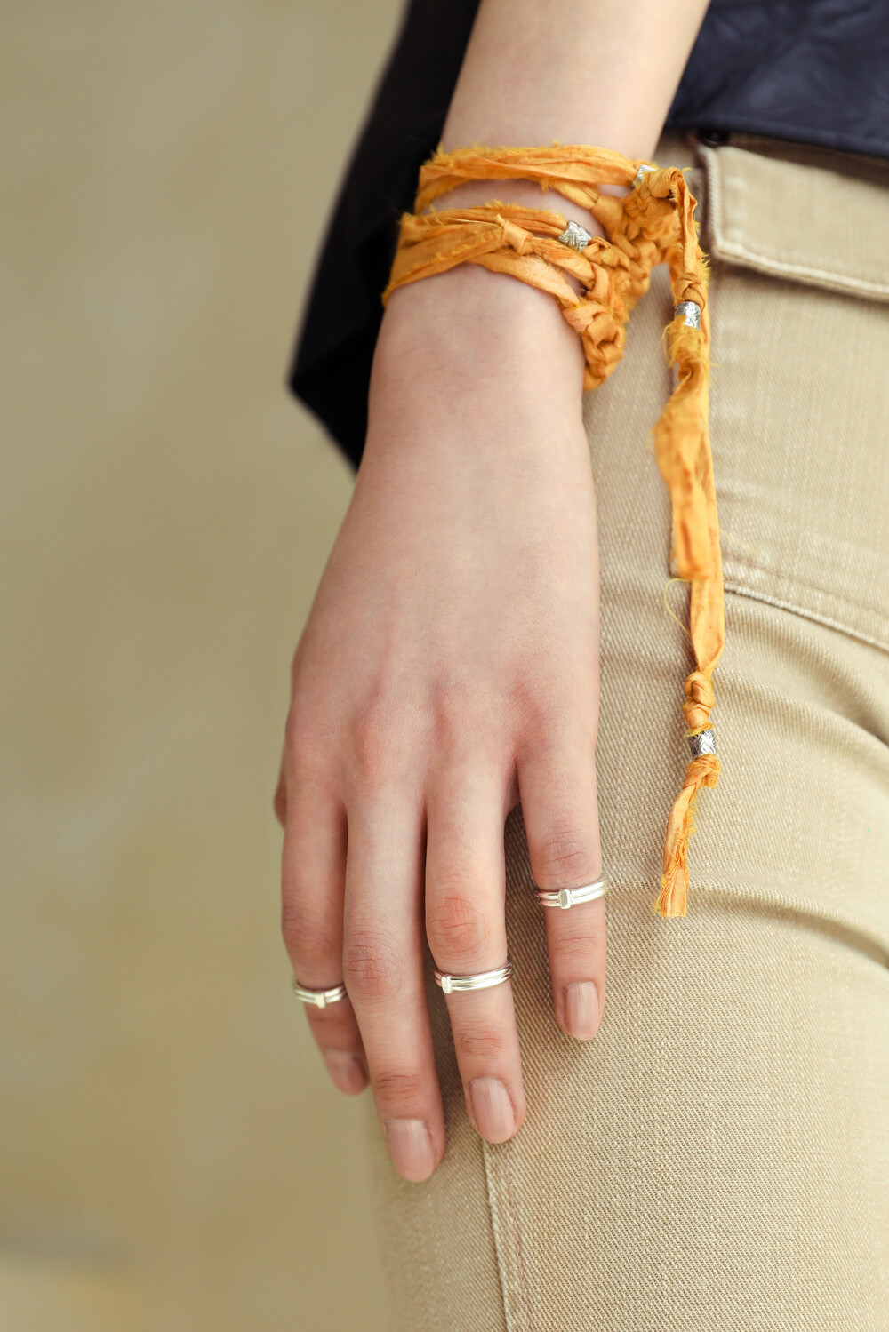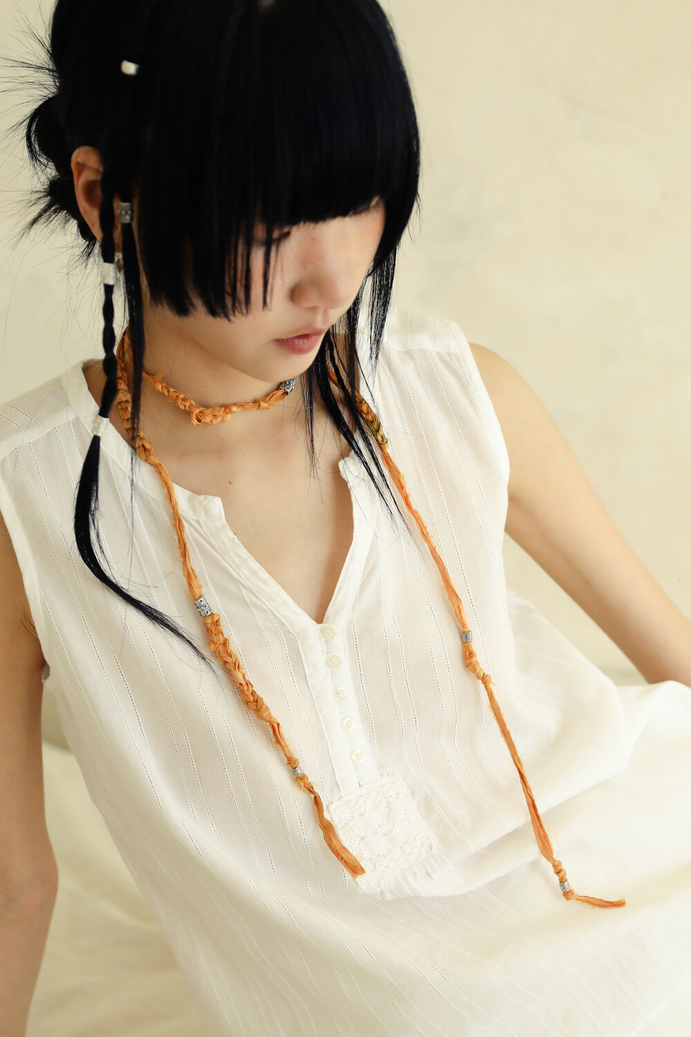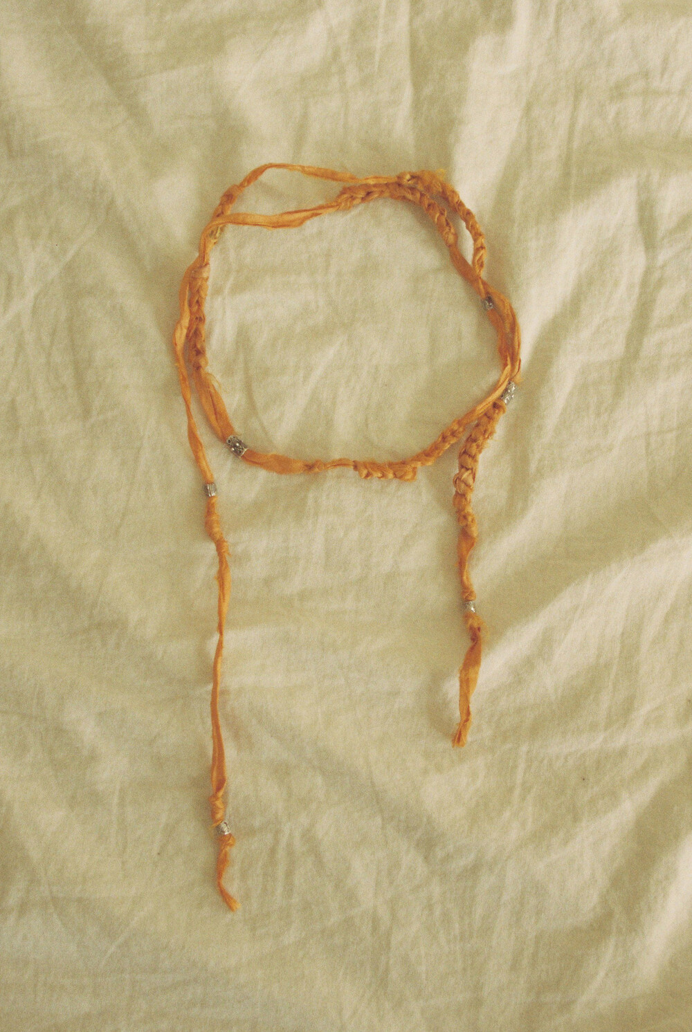 인도 실크로 제작한 노란빛의 스카프입니다. 중간중간 실버로 제작한 참이 달려있습니다. 직접 염색을 하는 제품이라 같이 생산한 실크로 제작해도 컬러와 무늬가 조금씩 다른 것이 특징입니다. 최대한 예쁜 컬러로 제작하여 보내드리며 이 점은 교환 및 반품 사유가 되지 않습니다.