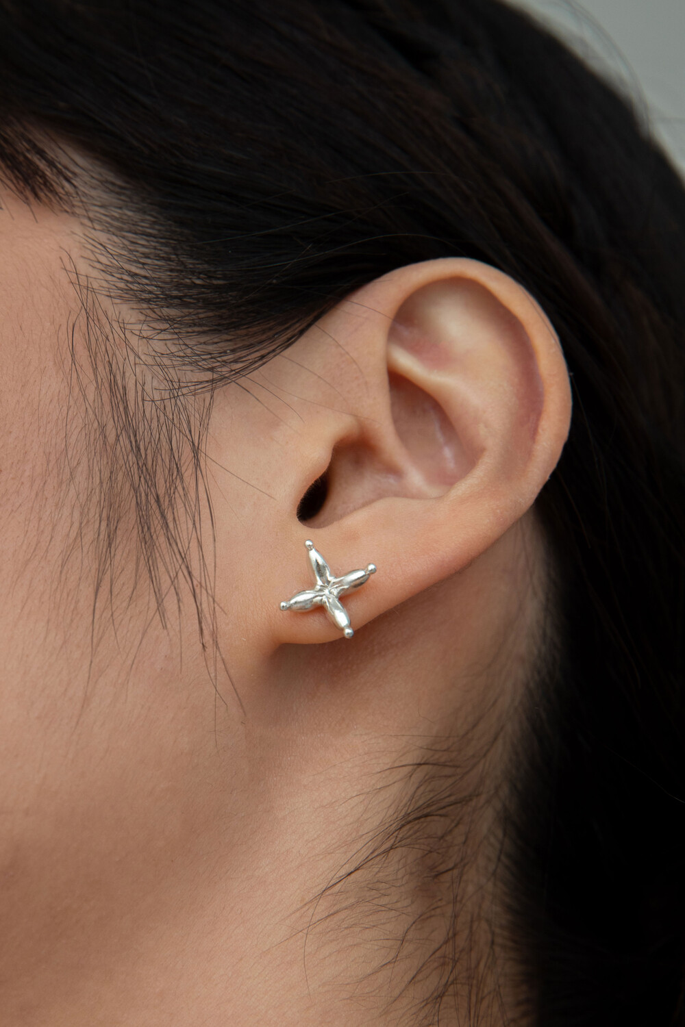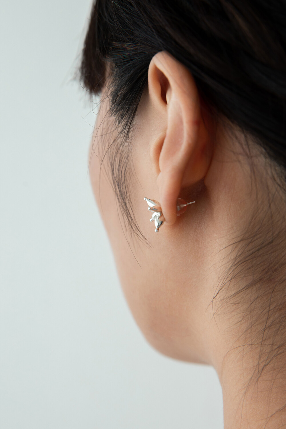 작은 나비를 입체적으로 표현한 스터드형 귀걸이입니다. 데일리로 착용하기 좋은 사이즈로 꽃 같기도 하고 눈송이 같기도 한 모양이 산뜻한 포인트가 되어주는 제품입니다.