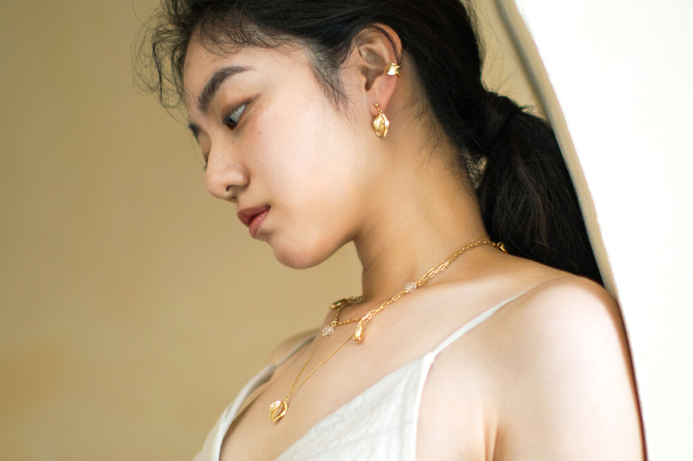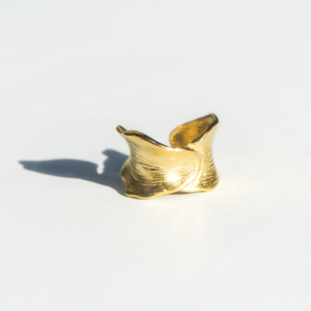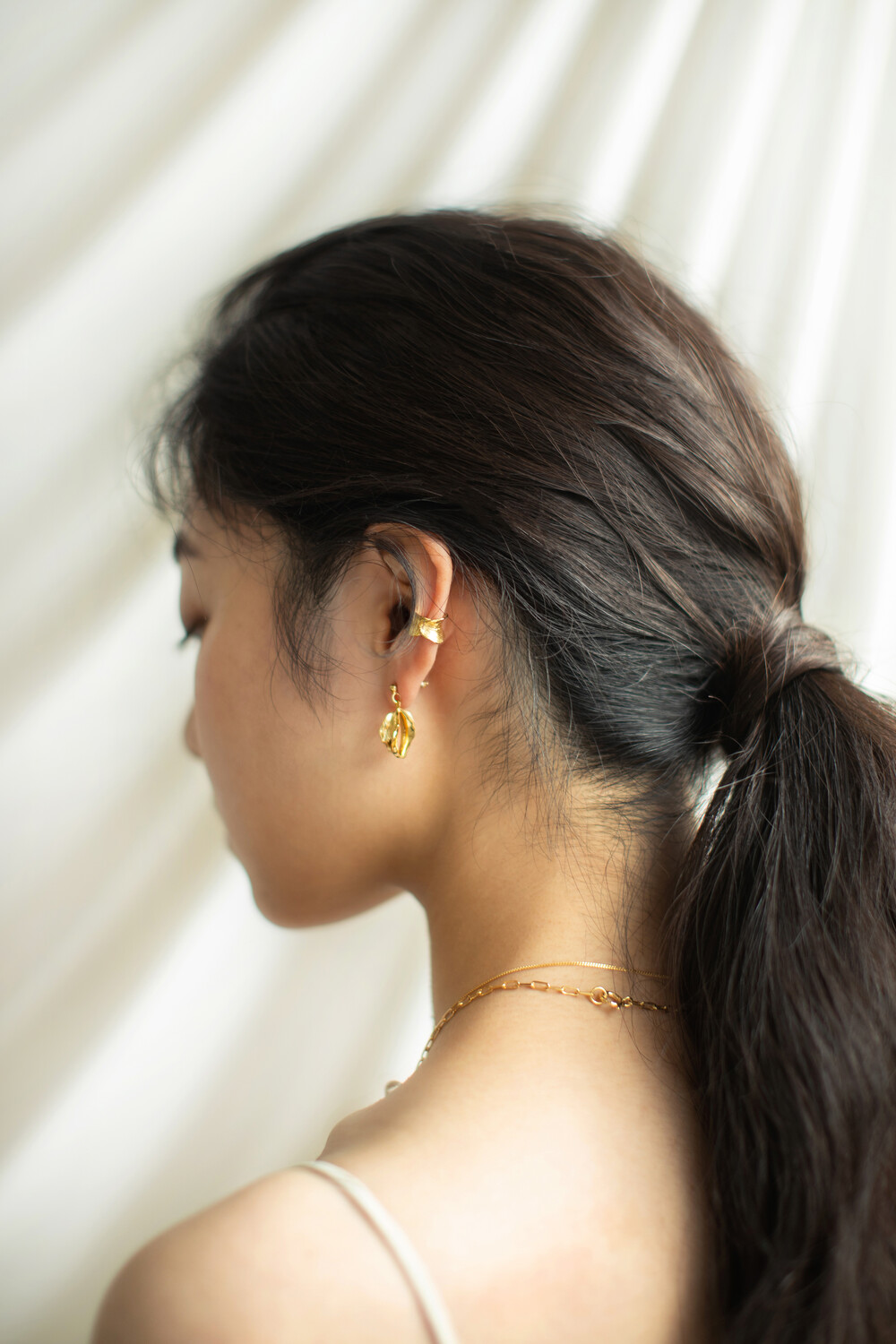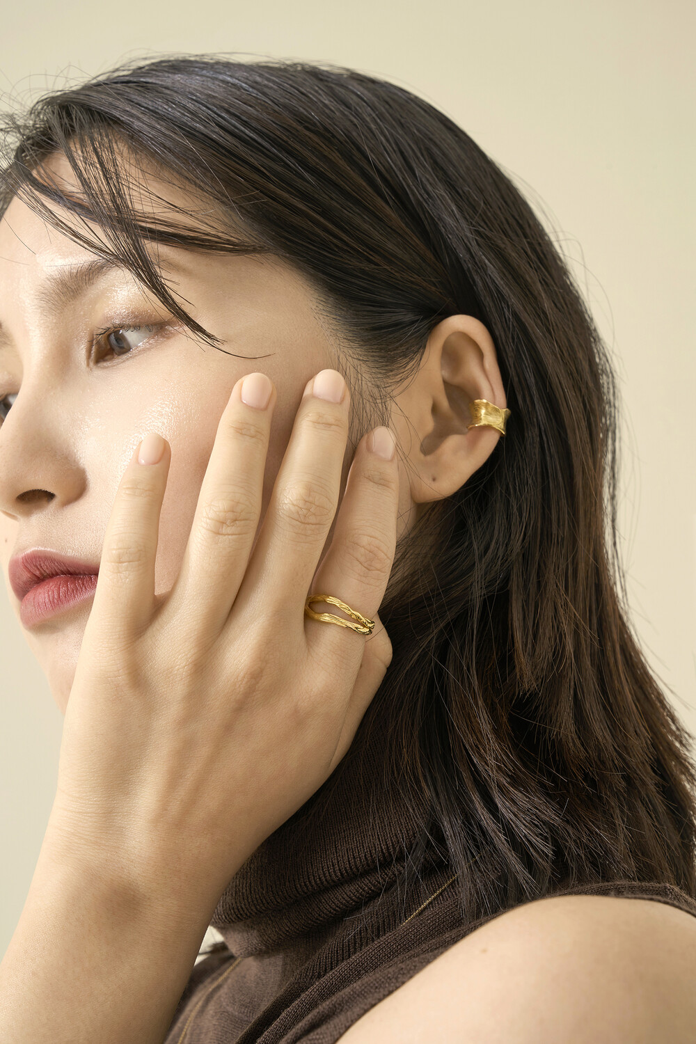 두 장의 꽃잎이 겹쳐진 형태에 세밀하게 표현된 질감이 더해진 이어커프입니다. 전체적으로 매트한 무광 텍스쳐에 모서리 부분만 유광으로 포인트를 주어 독특한 질감이 주는 매력이 있습니다. 가벼운 착용감으로 장시간 착용하여도 불편함이 없습니다. 처음 착용 시에는 제품에 살짝 힘을 주어 자신의 귀 모양에 맞춘 후 착용하는 것을 추천드립니다. 단, 무리한 변형 시 제품이 망가질 수 있으니 주의해주세요.
