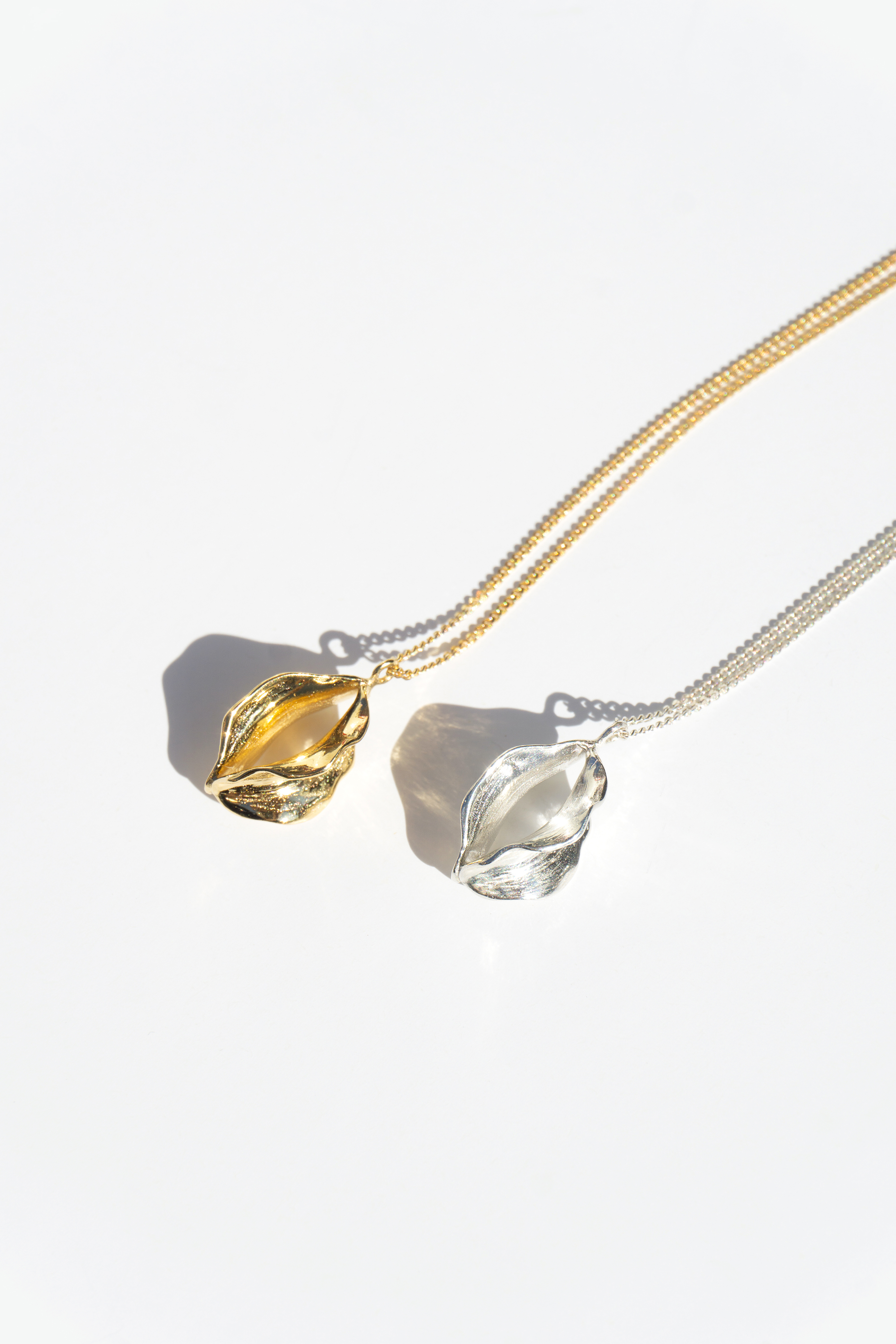 두 장의 꽃잎이 붙어있는 펜던트가 각도에 따라 다른 모습을 보여주어 매력적인 목걸이입니다. 얇은 체인을 사용하여 착용 시 목선이 가늘고 길어 보이며 50cm의 여유로운 길이로 사계절 내내 활용하기 좋습니다. 반팔이나 니트 위에 가볍게 착용해 보세요.