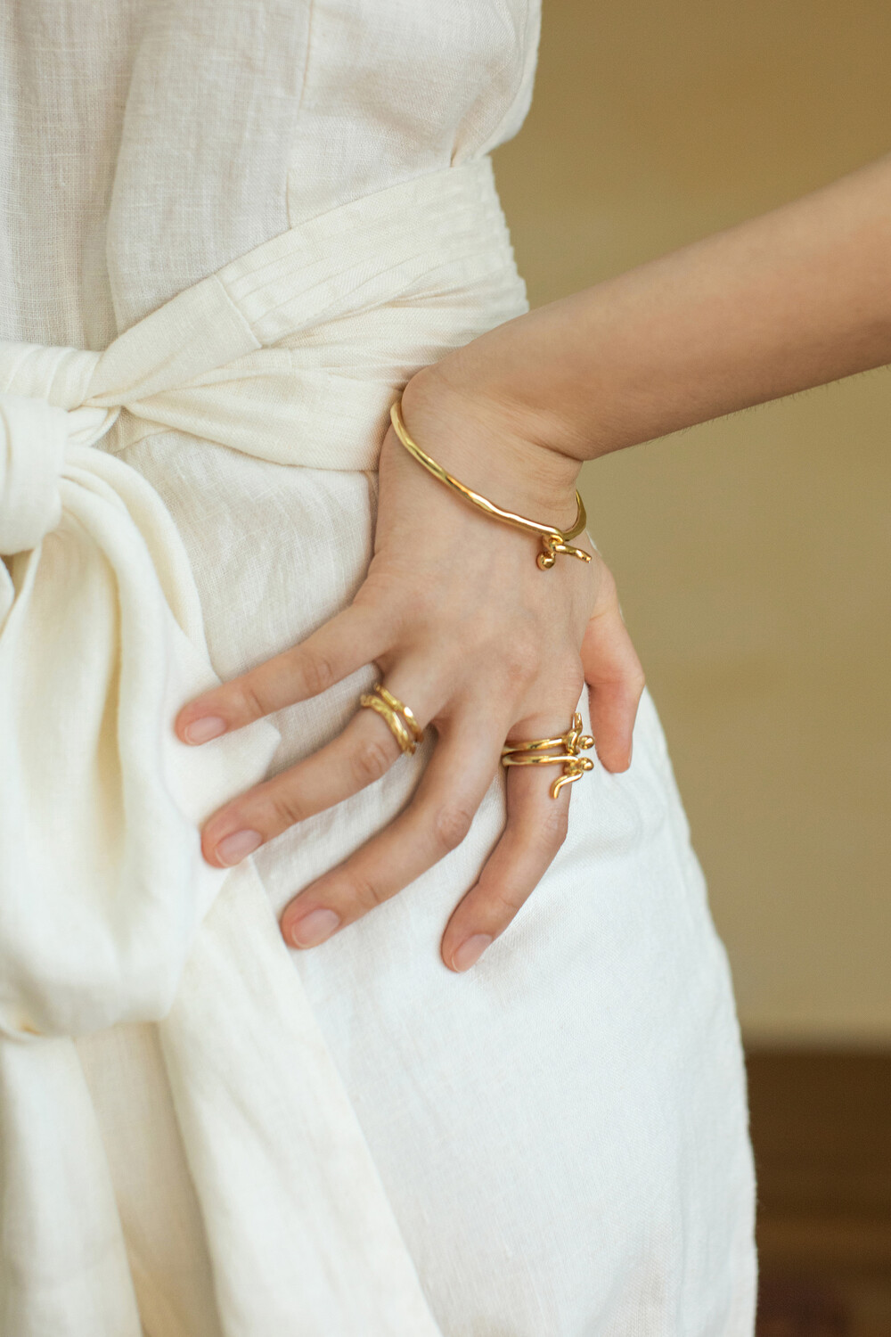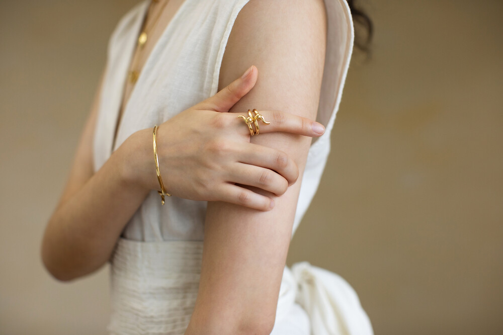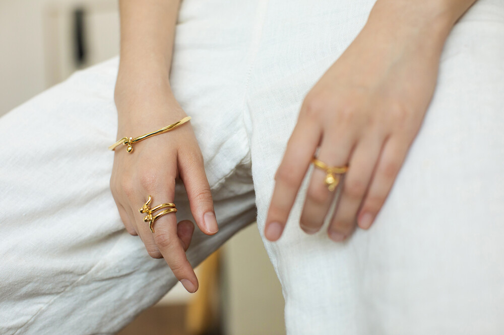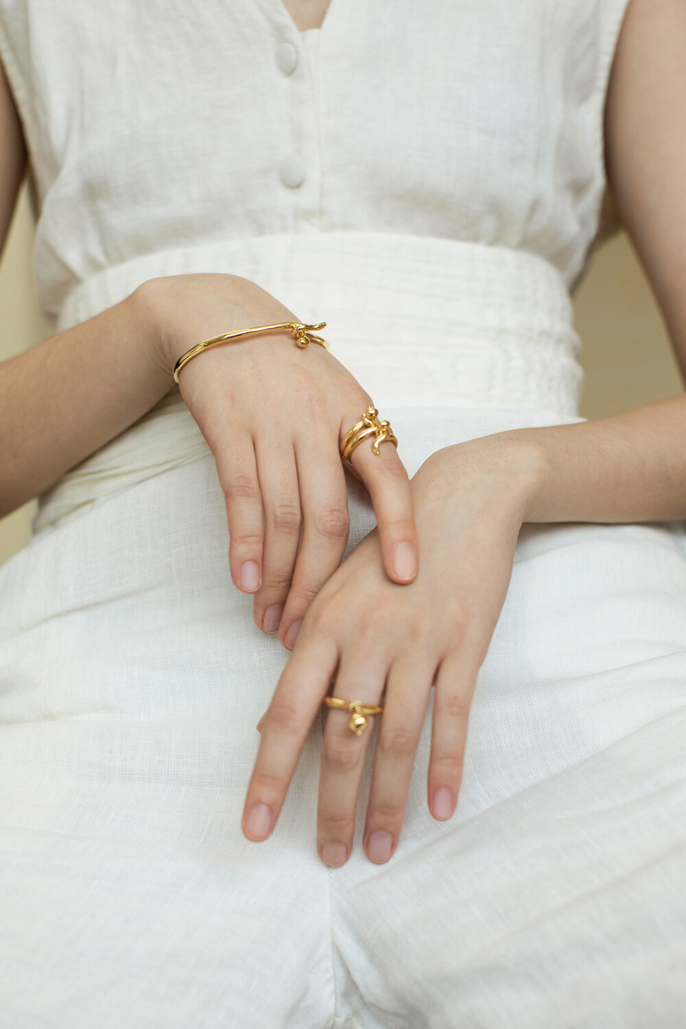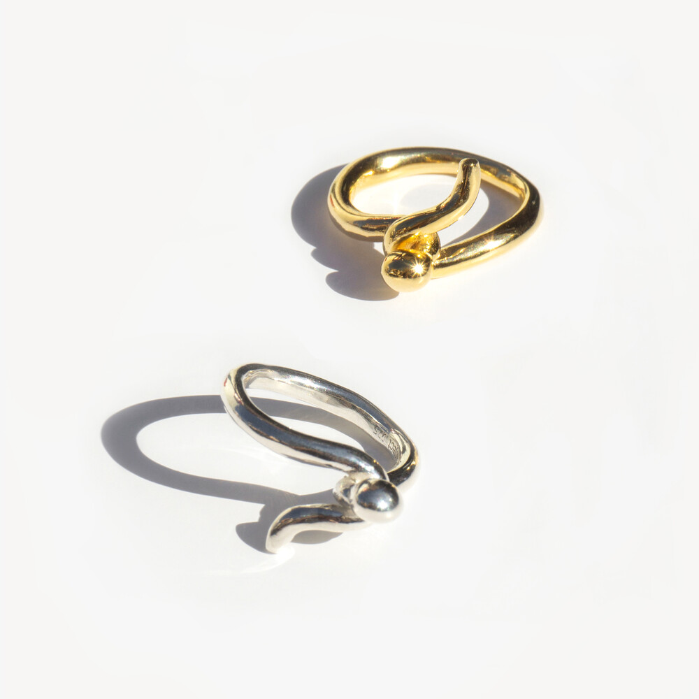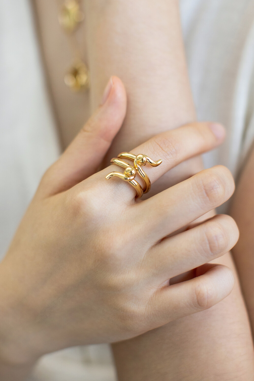 꽃의 암술머리에서 영감을 받아 제작한 반지입니다. 반지를 착용하는 방향에 따라 무드가 달라지므로 위아래 구분없이 다양하게 즐겨주세요. 반지 안쪽이 둥글어 착용이 용이한 제품입니다. 정사이즈 보다 1-2호수 작게 주문해주세요.