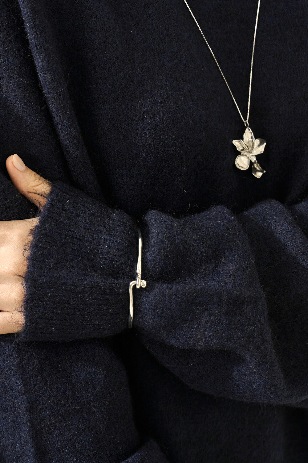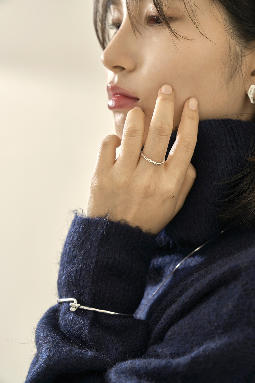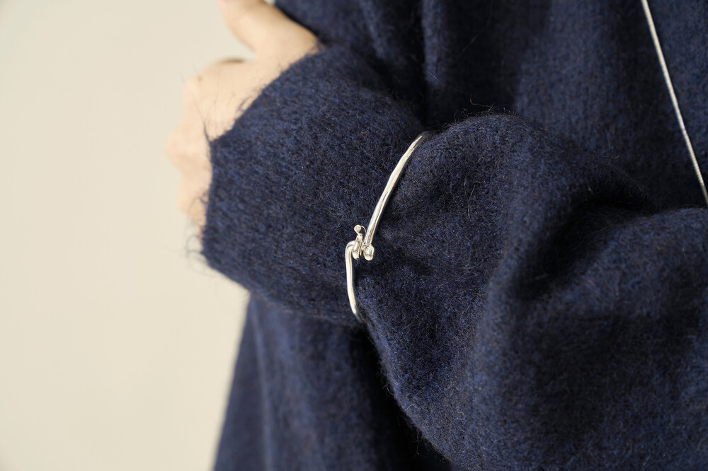 꽃의 암술머리에서 영감을 받아 제작한 뱅글입니다. 잠금장치 끝에 세밀하게 조각된 큐빅이 유니크한 포인트를 더해줍니다. 다양한 의상과 매칭을 원하는 분들께는 M사이즈를 추천드립니다. 블라우스나 니트 위에 착용해보세요. 텐션을 이용한 잠금장치이므로 무리해서 압력을 가하면 제품이 망가질 수 있으니 주의해주세요.
