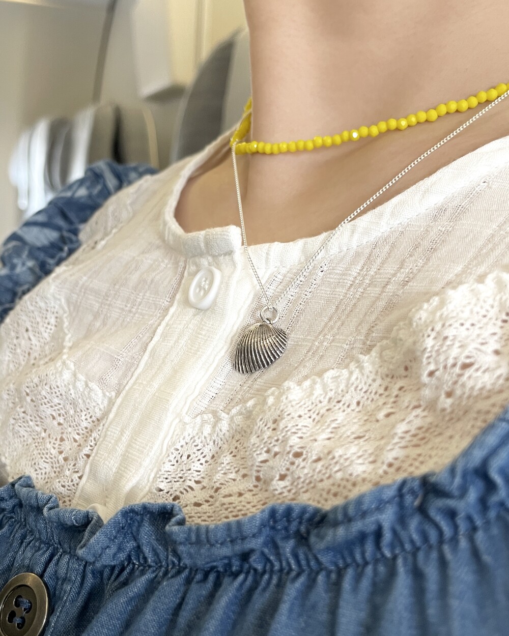 주웠던 조개를 본 떠 만든 목걸이입니다.